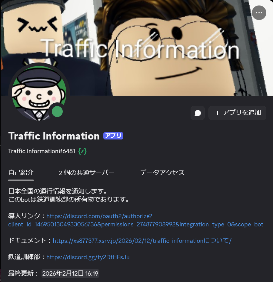 この度Traffic Informationという新しいDiscordのBotを作成し、全体公開を致します。