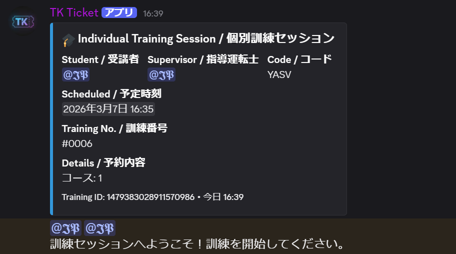 - 個別訓練の申し込みはコマンド上でサクッと行えるようになります